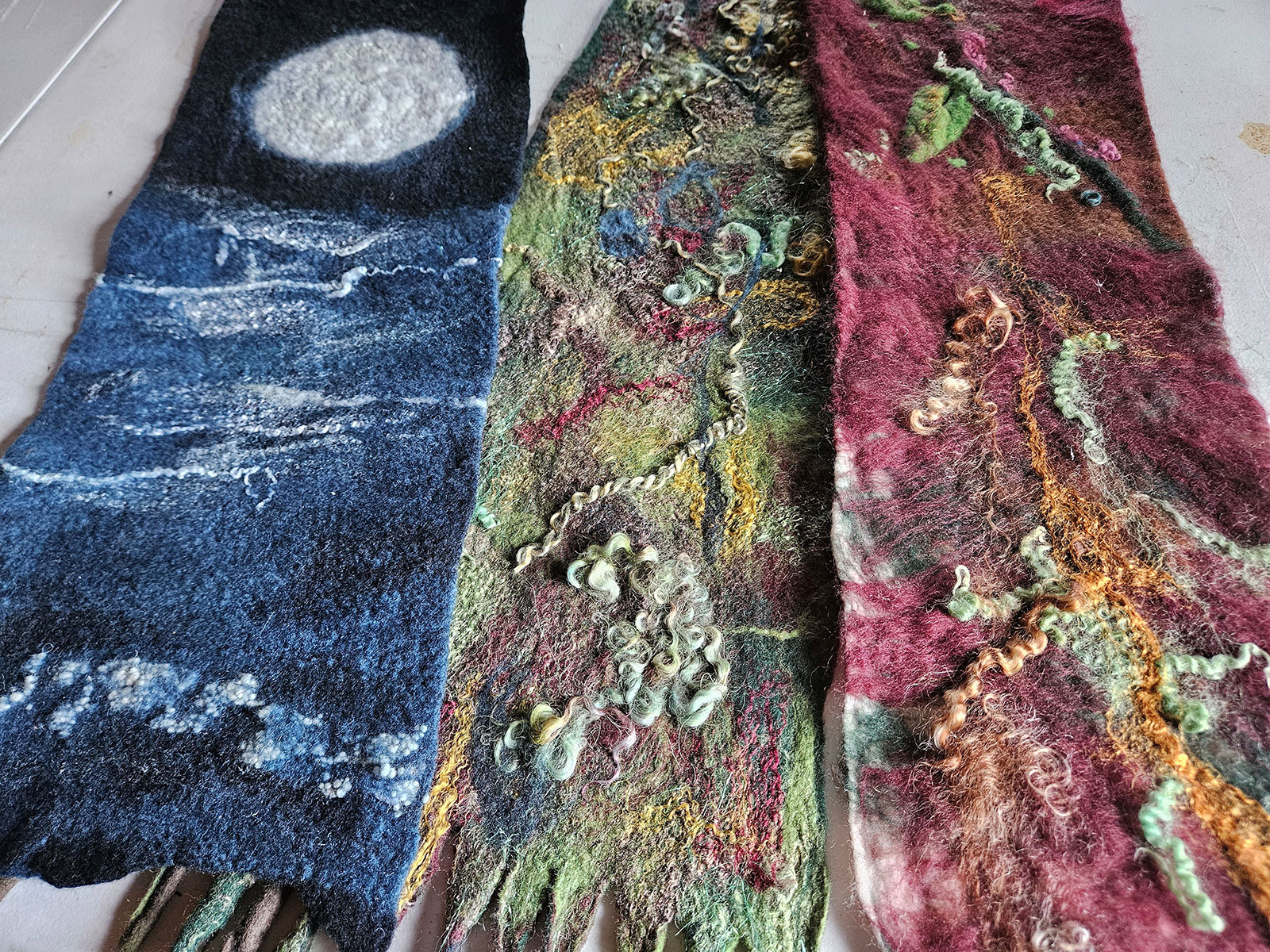 Learn the basics of smooth, fine layout, even edges, and wool types. Embellish with yarns, silk, bamboo, viscose and more while creating a table runner or wall hanging. Explore the endless possibilities of wet felting! ALL felting materials included with tuition.