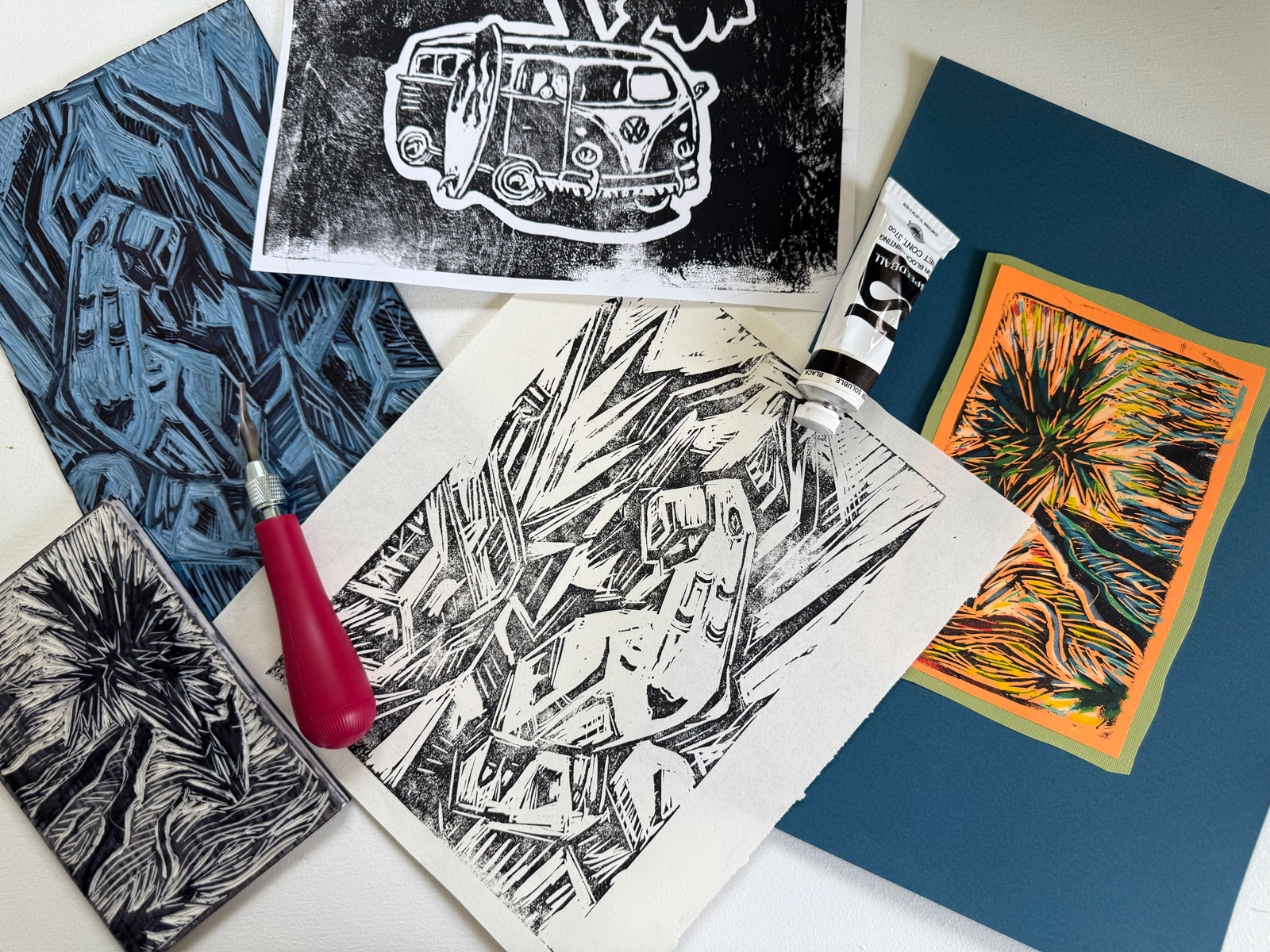 You'll get to try all the equipment and media before you invest; carving tools, 1-2 speedy-carve linocut blocks, printing ink and papers. Lisa will provide step-by-step instructions, multiple examples, and a link to a helpful digital guide. Beginners and seasoned creatives welcome!